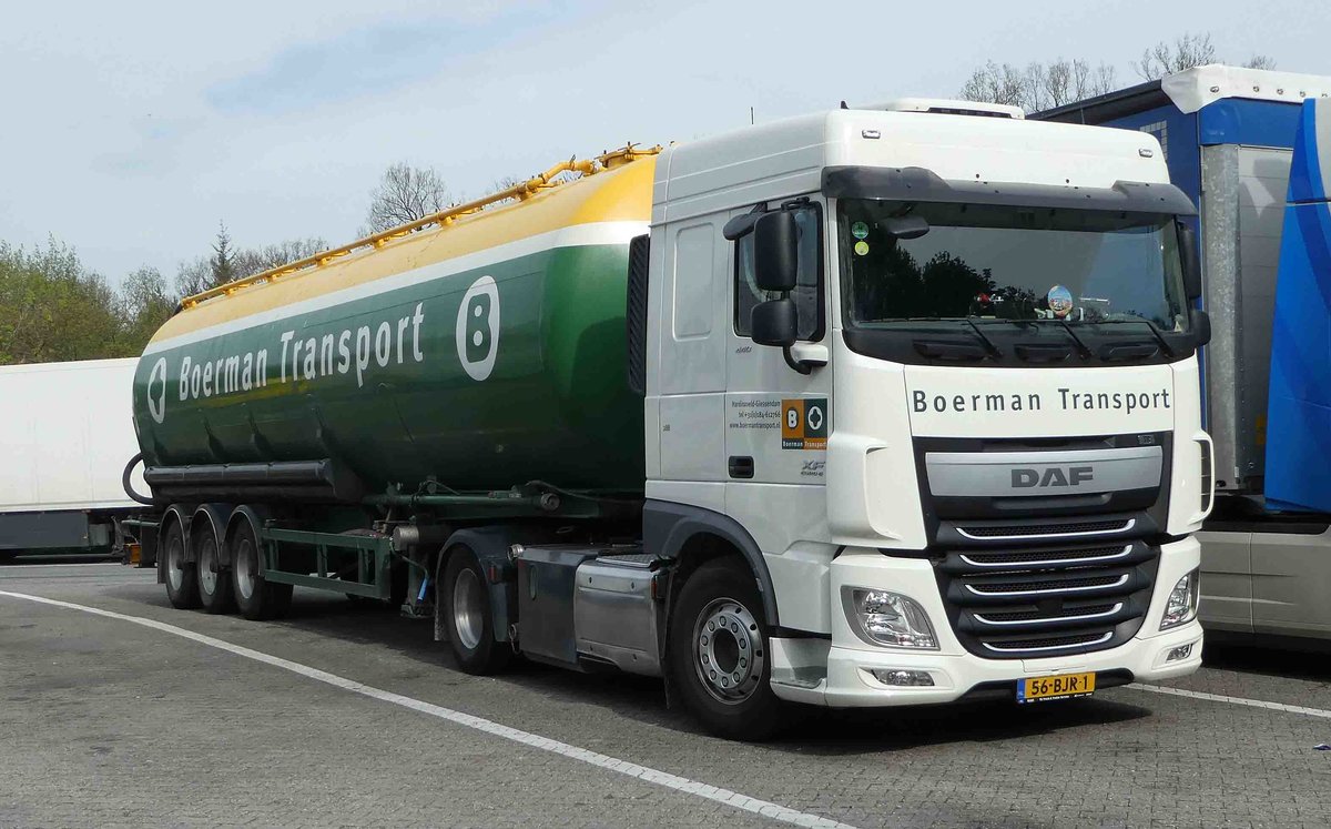 =DAF XF-Tankzug von "BOERMAN-Transport" rastet im April 2019 an der A3