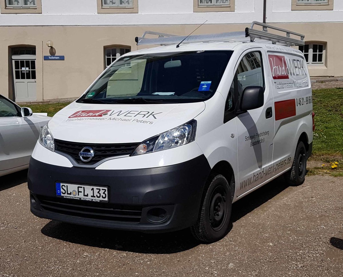 =Nissan NV 200 vom Tischlermeister PETERS steht am Schloss Gottorf im Mai 2019