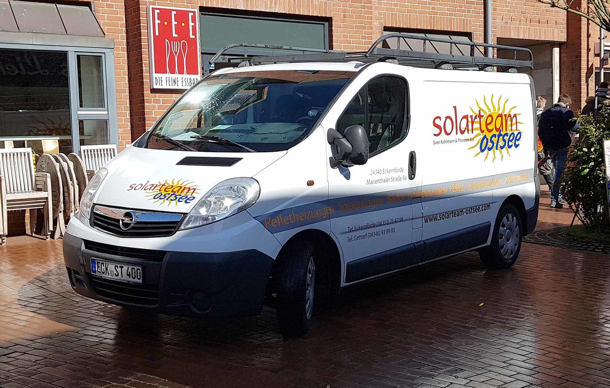 =Opel Vivaro von "solarteam ostsee" steht im Mai 2019 in Eckernförde