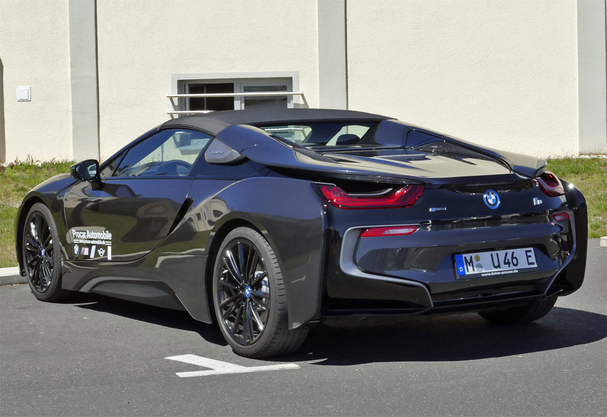 BMW i8 Roadster, Hybrid-Motor, Kennzeichen mit E am Ende, E-Motor 143 PS und 374 PS Systemleistung in Euskirchen - 15.05.2019