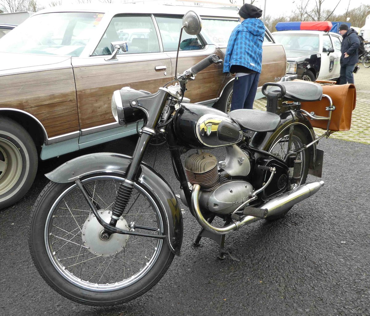 BMW 1502, gebaut von Januar 1975 bis August 1977. Motorisiert mit dem "abgespeckten" Motor des BMW 1602 verkaufte sich diese Sparversion des 02´er erstaunlich gut. Der 1502 war der einzige 02´er, der nach dem Verkaufsbeginn des E21 (erster 3´er BMW) im Mai 1975, weiterproduziert wurde. Der um 30 Grad nach rechts geneigt verbaute Vierzylinderreihenmotor hat einen Hubraum von 1573 cm³ und leistet 75 PS. Der BMW dürfte im Farbton casagrün lackiert sein. Youngtimertreffen Zeche Ewald in Herten am 12.05.2019.