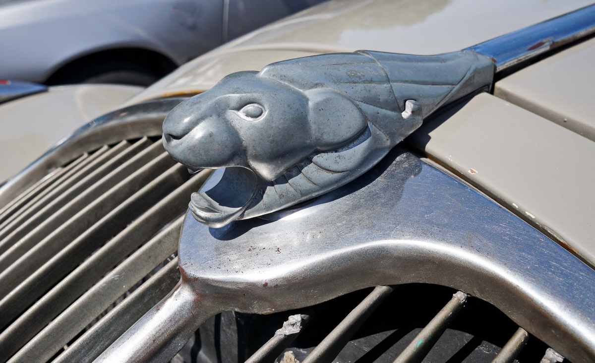 Kühlerfigur an einem Peugeot 402 Legere. Foto:32. Oldtimertage Berlin-Brandenburg; 13.05.2019