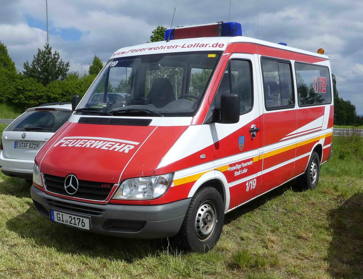 =MB Sprinter der Freiwilligen Feuerwehr der Stadt LOLLAR steht auf dem Parkgelände der RettMobil Fulda im Mai 2019