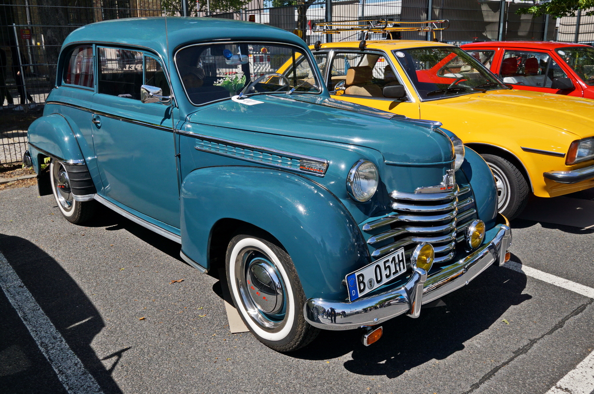 OPEL Olympia. Bauzeit 1950 bis 1953. 4-Zylinder Motor mit 39PS. Vmax 112km/h. Foto:32. Oldtimertage Berlin-Brandenburg; 13.05.2019