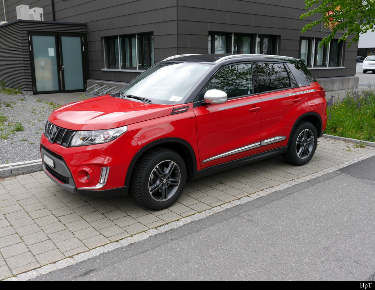 Jeep Renegarde mit Werbung auf Parkplatz in Neuhausen am 14.05.2019
