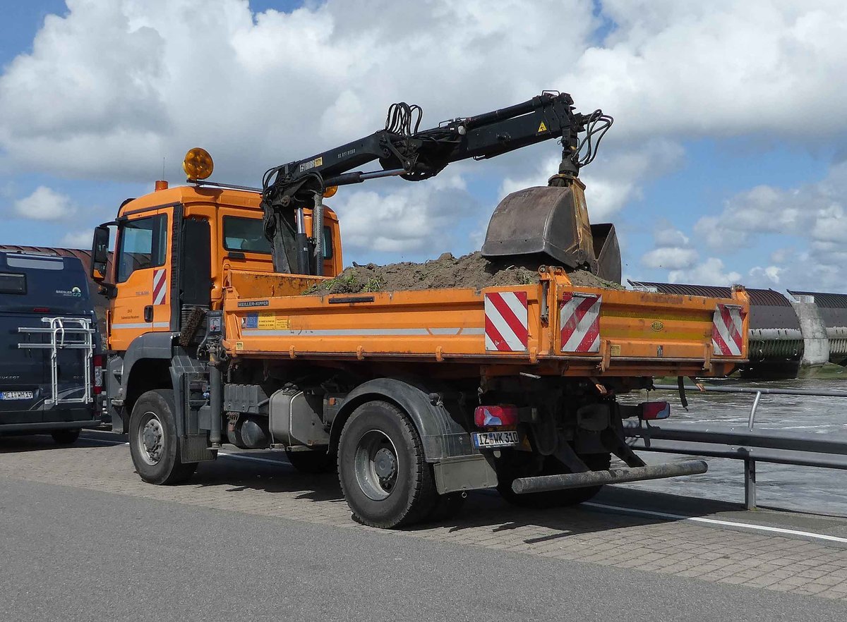 =MAN TGS der Strassenmeisterei Wesselburen steht im Mai 2019 am Eidersperrwerk