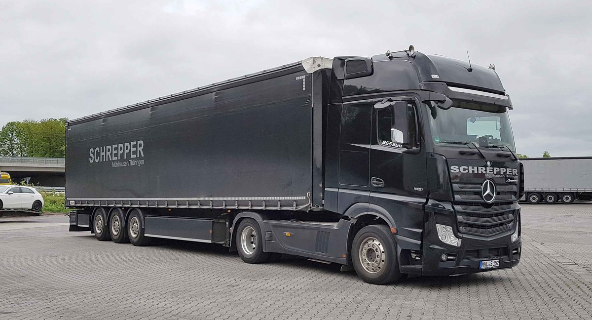 =MB Actros der Spedition SCHREPPER rastet an der A 7, Mai 2019