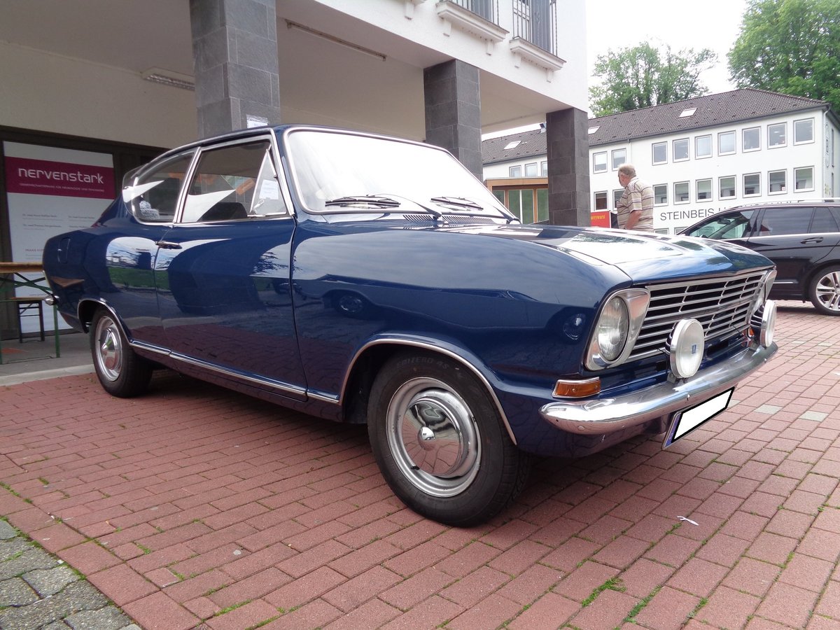 Op 18. Prinz Friedrich Oldtimertreffen am 26.05.2019 in Essen-Kupferdreh.el Kadett B Coupe, gebaut in Bochum von 1965 bis 1970. Hier wurde ein so genanntes "Kiemencoupe" im Farbton royalblau abgelichtet. Der Vierzylinderreihenmotor mit einem Hubraum von 1078 cm³ leistet, je nach Vergaserbestückung, 45 PS, 55 PS oder 60 PS.
