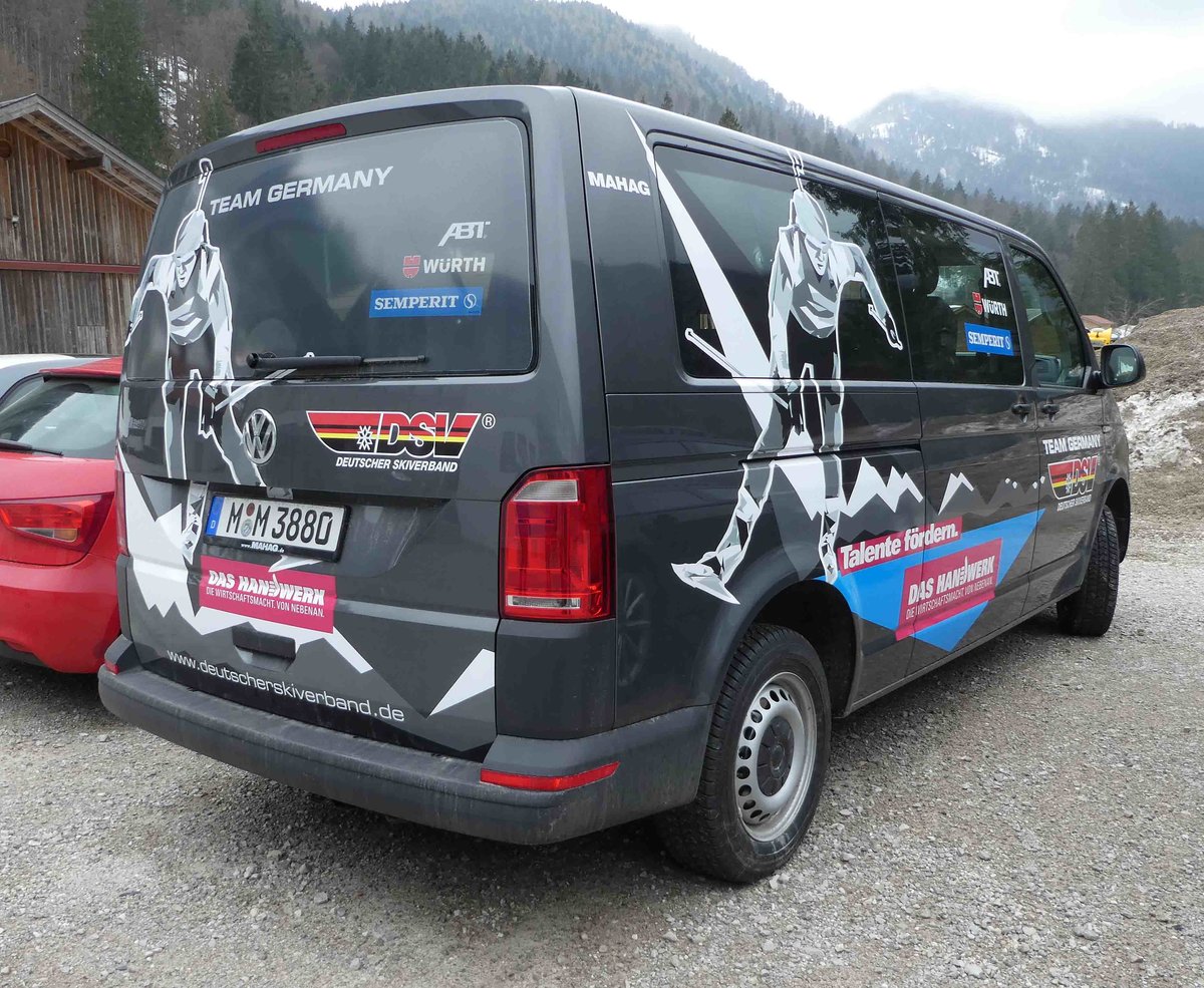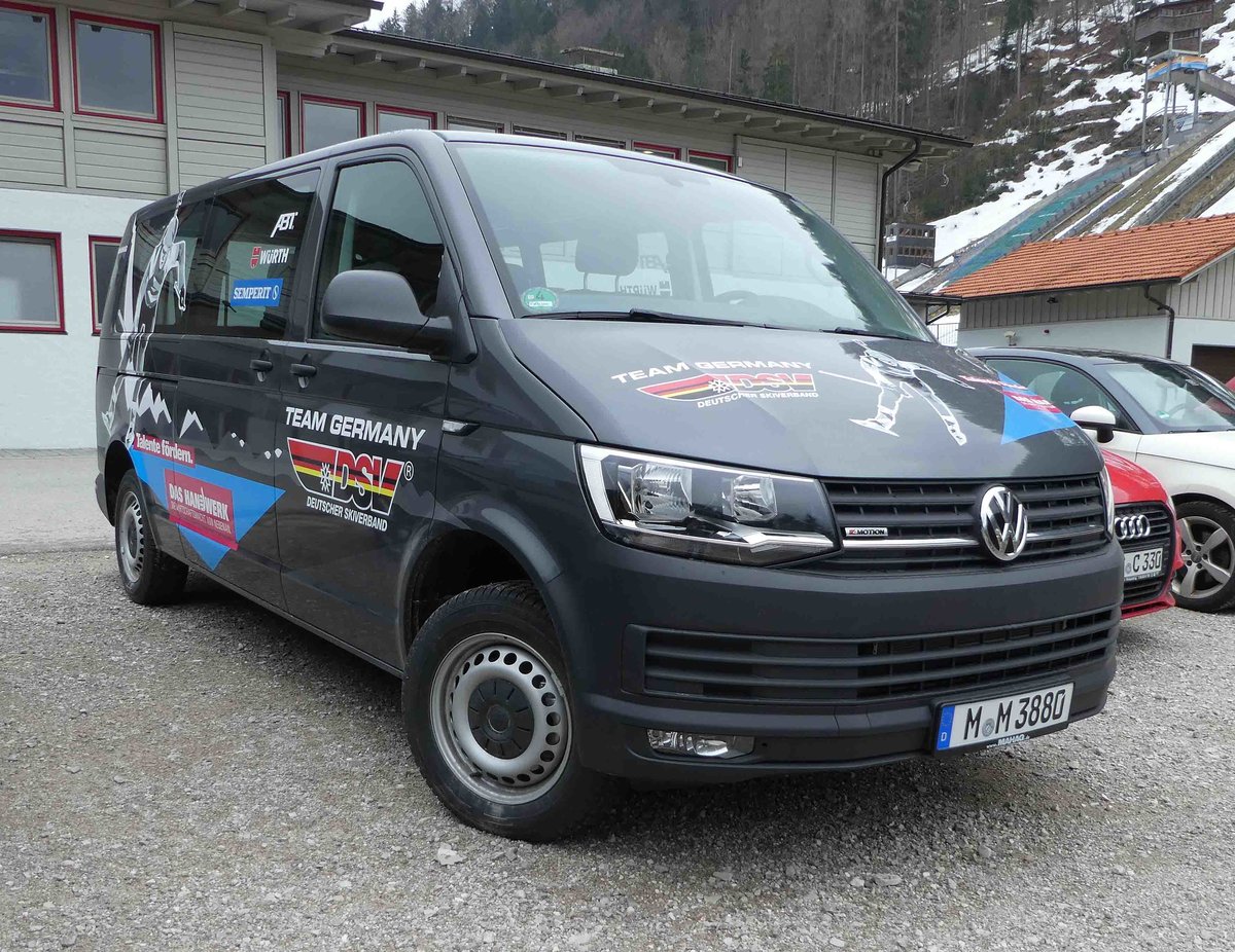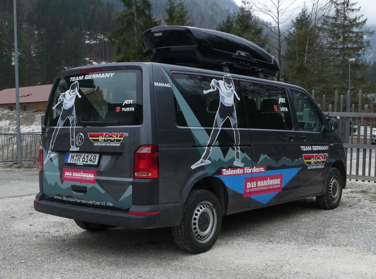 =VW T6 vom DSV steht im Biathlonstadion in Ruhpolding, April 2019
