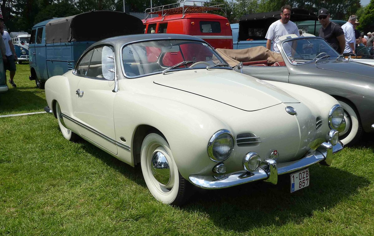 =Karmann Ghia aus Belgien steht auf dem Ausstellungsgelände in Bad Camberg anl. LOTTERMANN-Bullitreffen im Juni 2019
