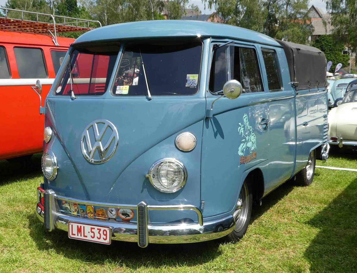 =VW T1 Doppelkabiner mit Pritsche steht auf dem Ausstellungsgelände in Bad Camberg anl. LOTTERMANN-Bullitreffen im Juni 2019