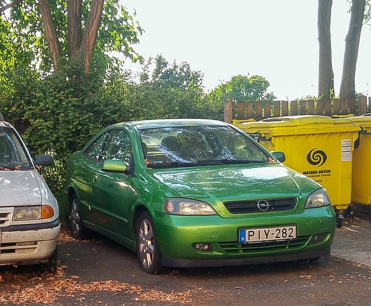 Opel Astra G Coupé, fotografiert in Pécs (Ungarn) in August 2019.