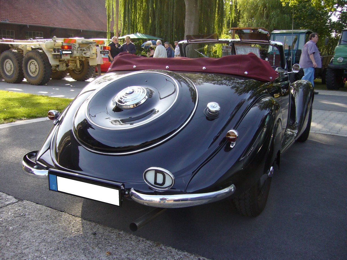 Heckansicht eines BMW 327/328 Cabriolet aus dem Jahr 1939. Oldtimertreffen des Oldtimerclubs Schermbeck am 22.09.2019 in Lühlerheim.