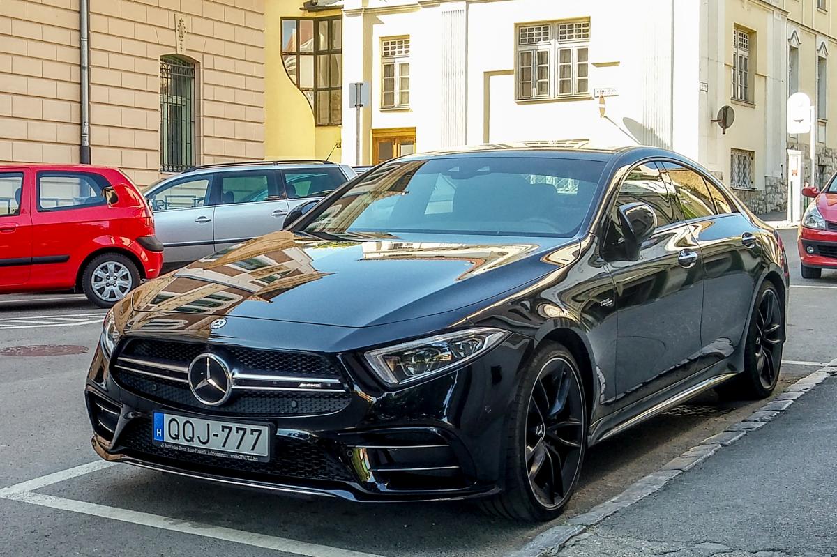 Mercedes-Benz CLS AMG mit Sonderkennzeichen in Pécs (HU), Sommer, 2019.