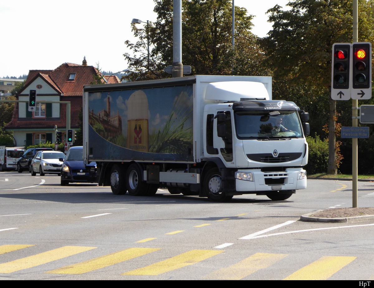 Scania P 360 Sattelschlepper beim Bahnhof in Biel am 19.09.2019
