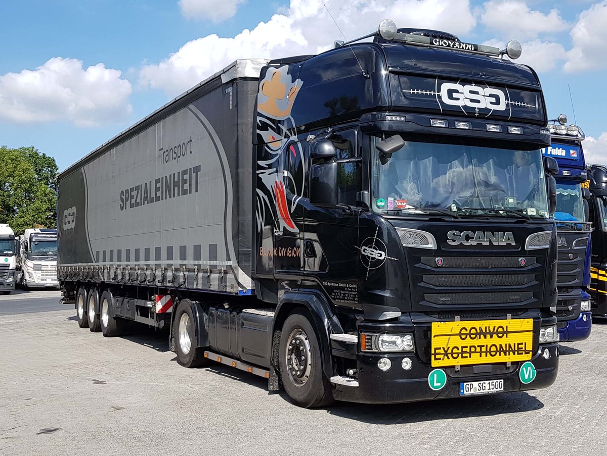 =Scania der Spedition GSG steht am Rasthof Fulda Nord im August 2019