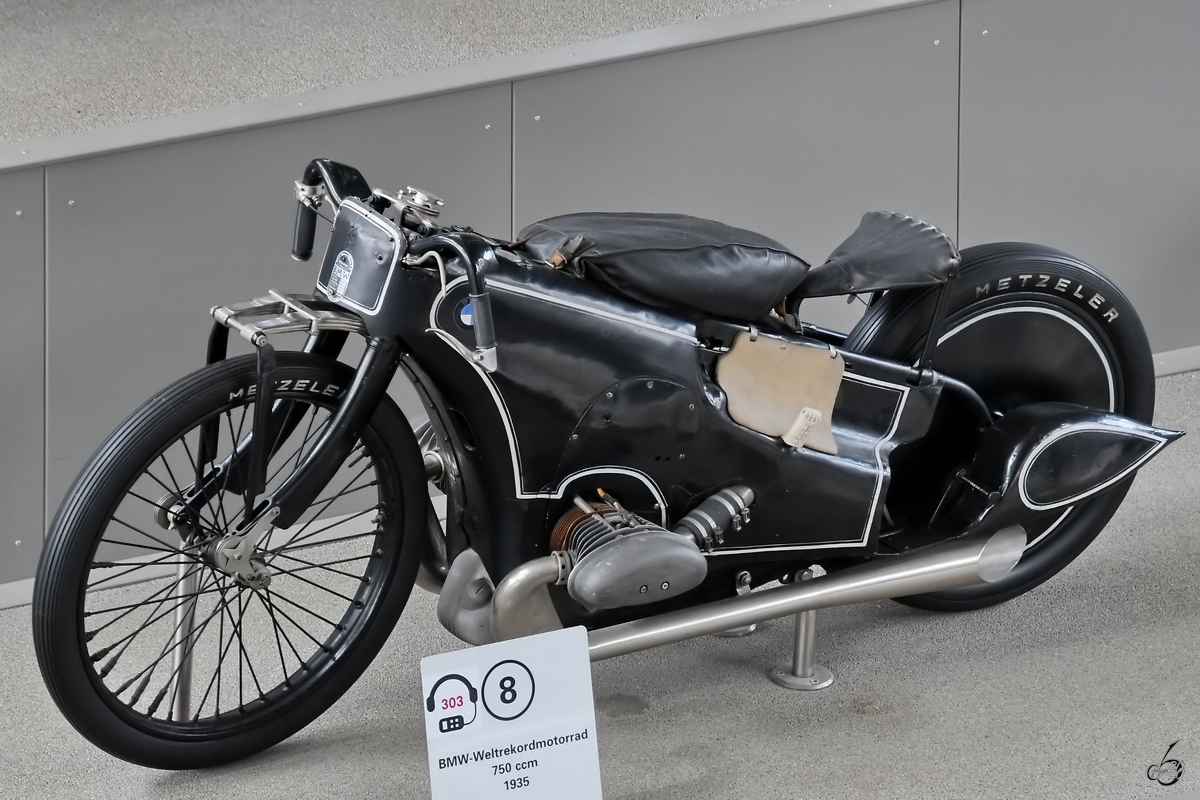 Das BMW Weltrekordmotorrad 750 ccm von 1935. (Verkehrszentrum des Deutschen Museums München, August 2020)