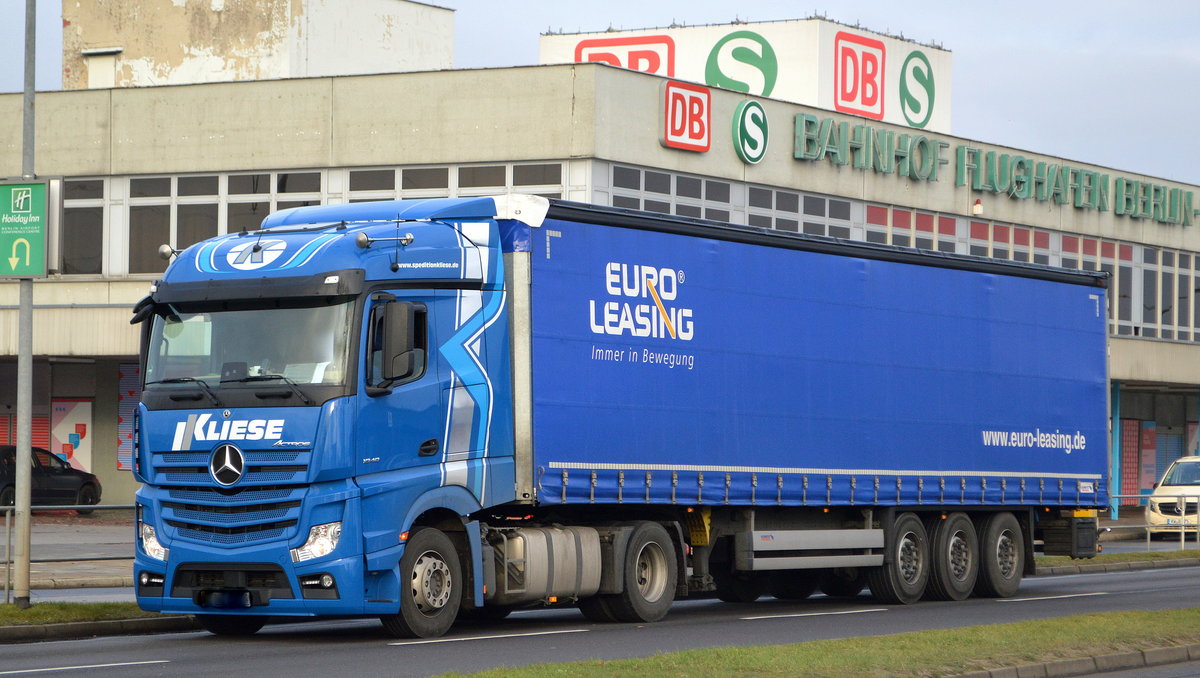 Spedition KLIESE mit MB ACTROS 1848 Zugmaschine und EURO LEASING Auflieger am 16.12.20 Schönefeld b. Berlin.