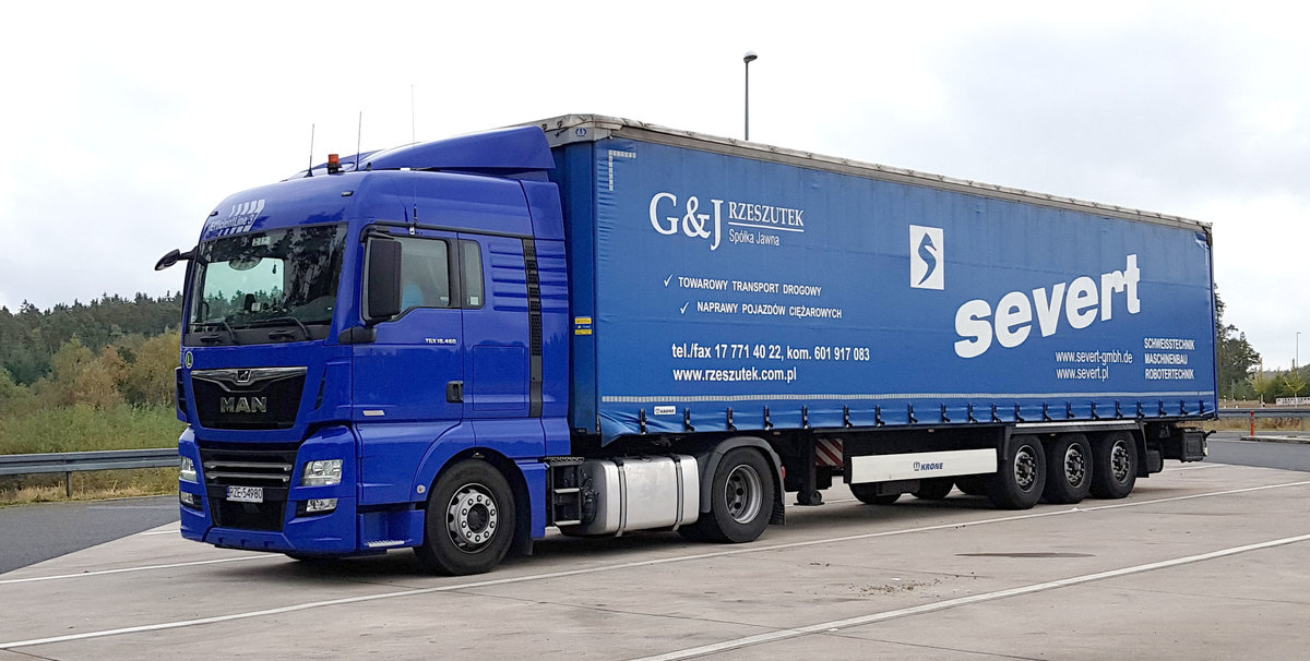Polnischer Sattelzug mit Eutersiloauflieger und MAN Zugmaschine am 28.02.20 Berlin Marzahn.