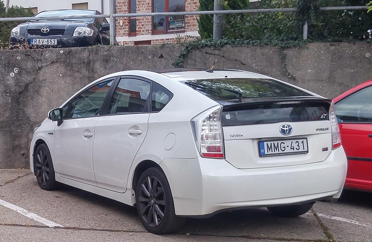 Rückansicht: Toyota Prius III. Foto: Oktober 2019, Pécs- Ungarn.