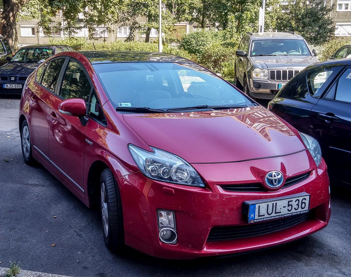 Toyota Prius III in Rot (Budapest, Ungarn, September, 2019)