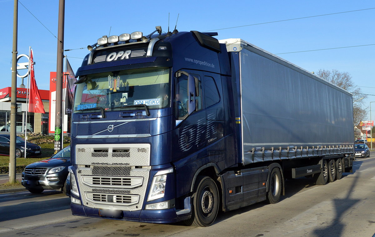 Die OPR Spedition GmbH mit einem Sattelzug mit VOLVO FH 500 Zugmaschine am 20.01.20 Berlin Marzahn.