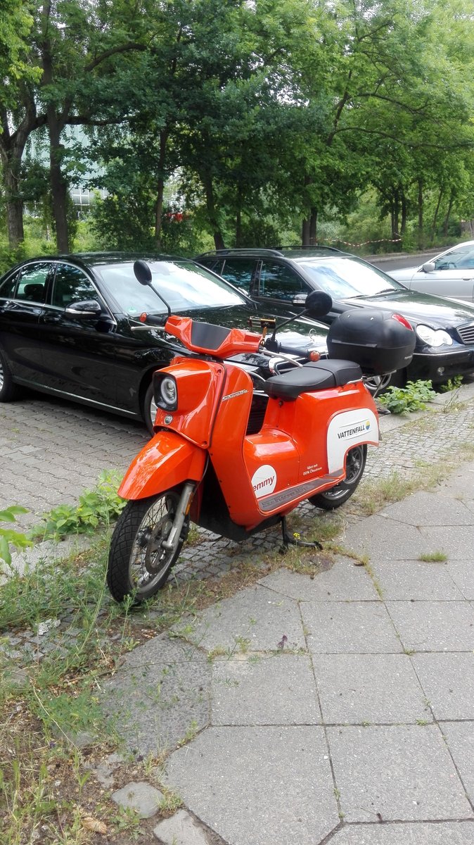 Ein Schwalbe Motorroller als Leihroller von Emmy in Berlin. Aufgenommen am 05.06.2020.
