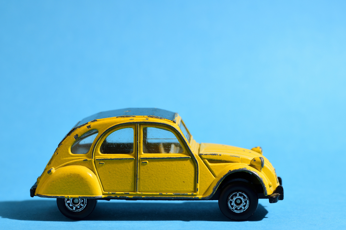 Citroen 2CV, von Mc Toy, Tablefotografie eines alten Spielzeugautos.Aufnahme am 10.11.2020