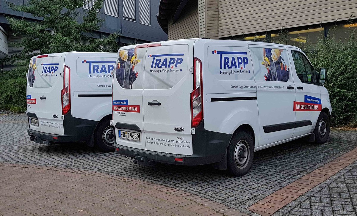 =Ford Transit vom Heizungsbauer TRAPP stehen im September 2020 in Hünfeld