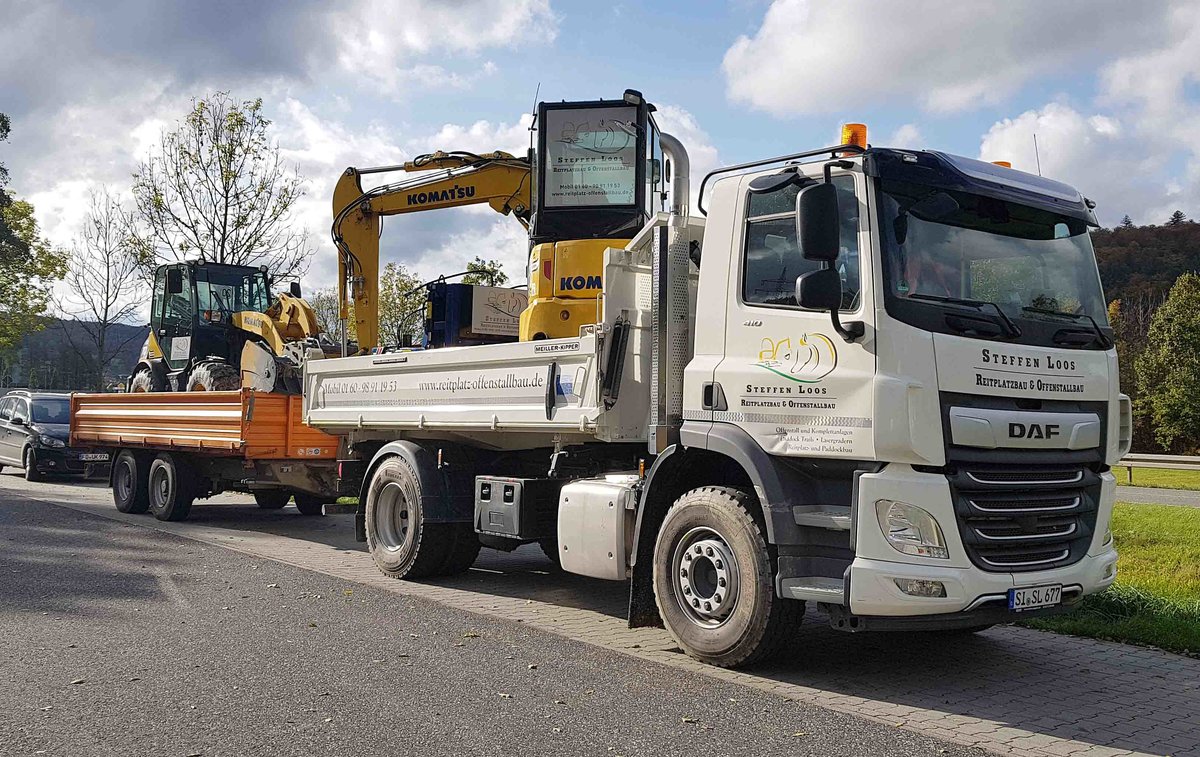 =DAF-Kipper von Reitstallbauer STEFFEN LOOS rastet in der Nähe der A 66 im Oktober 2020