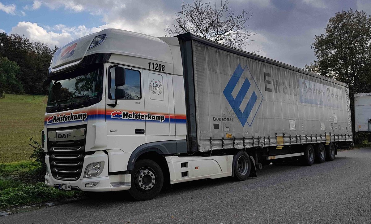=DAF XF der Spedition HEISTERKAMP schleppt einen Sattelauflieger der Spedition EWALS, 10-2020