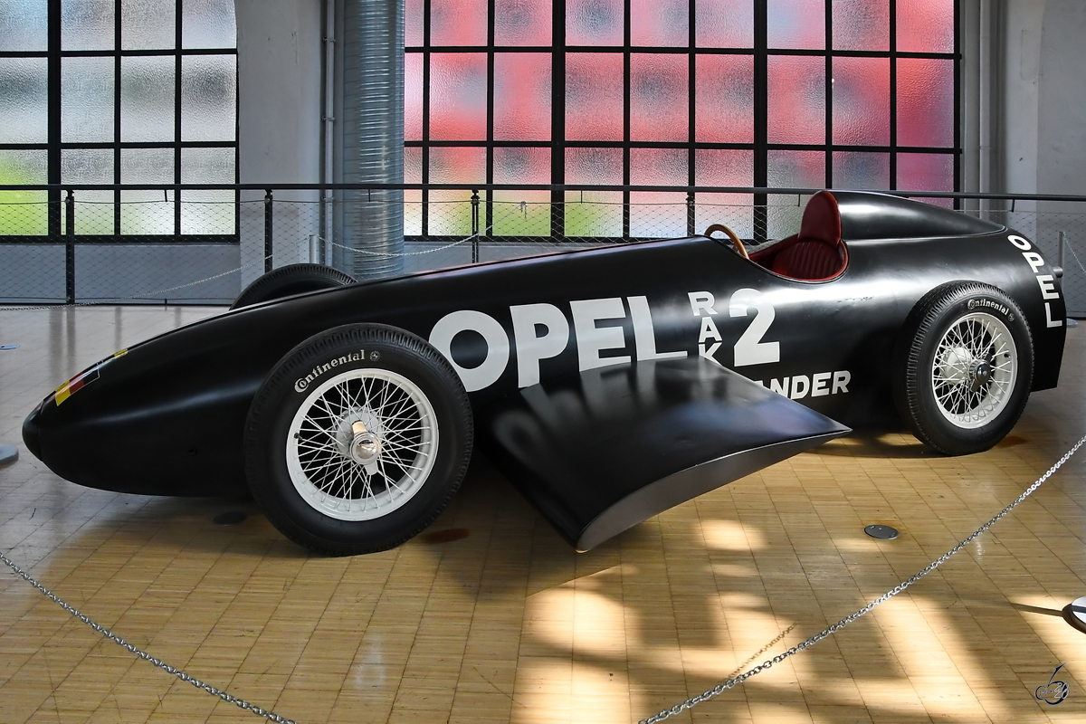 Der 1928 gebaute raketengetriebene Opel RAK2 stellte im Mai 1928 mit 238 km/h einen neuen Geschwindigkeitsweltrekord auf. (Verkehrszentrum des Deutschen Museums München, August 2020)