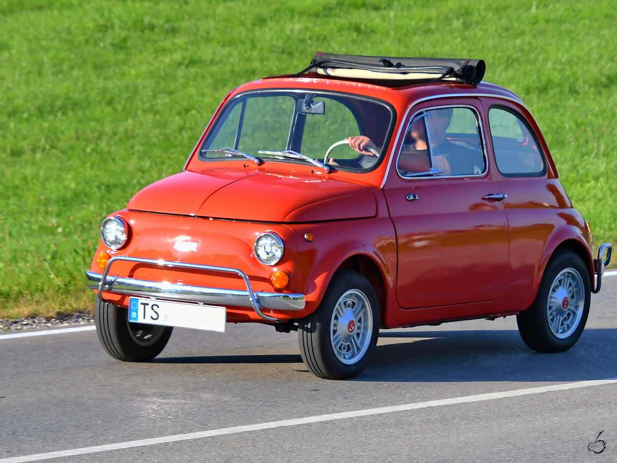 Heckansicht eines Fiat 850 Sport Spider aus dem Jahr 1972. Essen Kettwig am 15.11.2020.