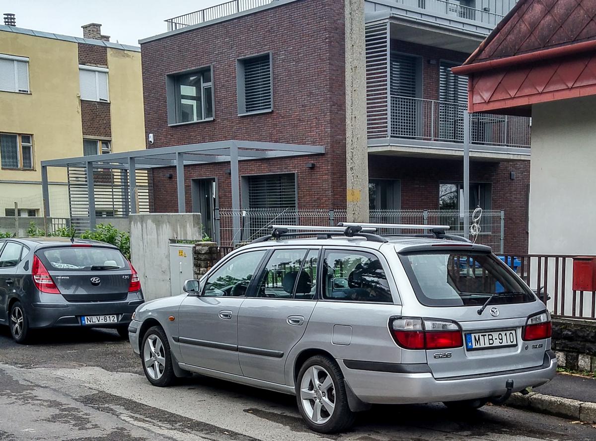Mazda 626 Mk6 Kombi Rückansicht, gesehen in Juni 2020.
