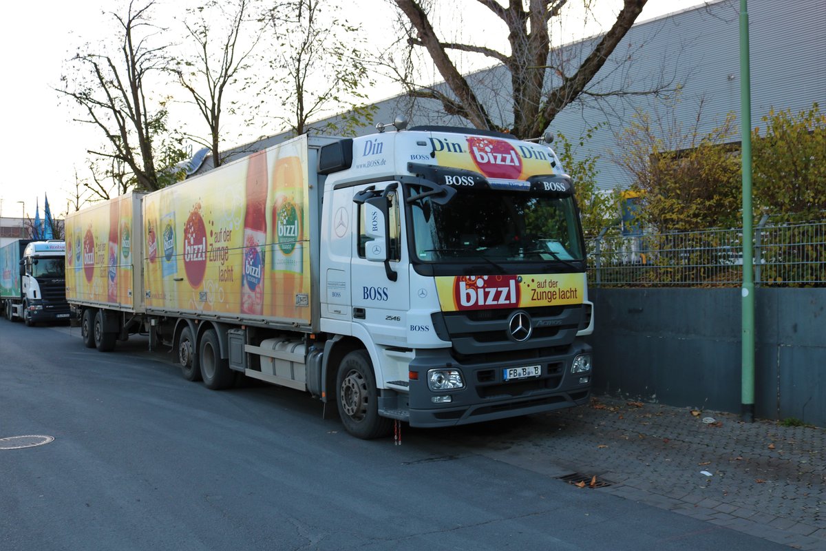 Mercedes Benz Actros Getränke LKW am 21.11.20 in Bad Vilbel