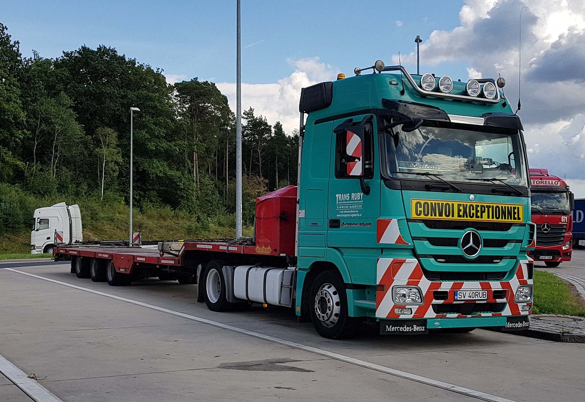 =MB Actros von TRANS RUBY steht auf einer Rastanlage an der A 7 im September 2020