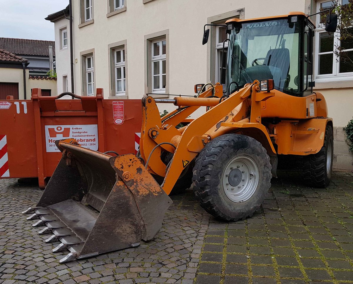 =Volvo ECR 88 plus der Firma BOCK & Sohn bei Aufräumarbeiten nach einem Großbrand, 08-2020