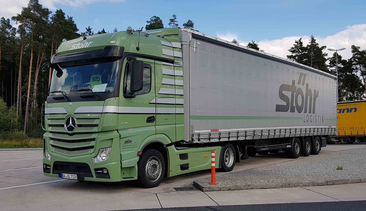 =MB Actros-Sattelzug vom STÖHR-Logistik rastet im September 2020 an der A 7