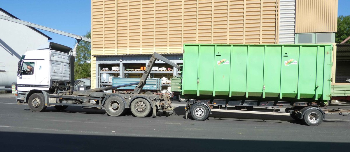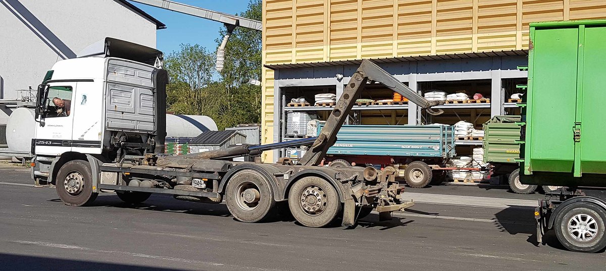 =Unimog bei der Getreideanlieferung auf dem Betriebshof der Raiffeisen-Warenzentrale in Hünfeld, Juli 2020