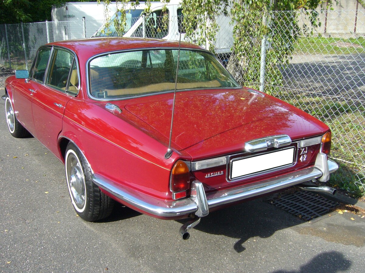 Jaguar XJ Series II 4.2 Litre Limousine. Die XJ Modellreihe wurde bereits 1968 vorgestellt. Auf der Frankfurter IAA des Jahres 1973 wurden die Series 2 Modelle vorgestellt, die jetzt auch als Coupe lieferbar waren. Der gezeigte 4.2 Litre war übrigens nur in den Jahren 1973 und 1974 im Modellprogramm von Jaguar. Der Sechszylinderreihenmotor hat einen Hubraum von 4235 cm³ und leistet 172 PS. Besucherparkplatz der Düsseldorfer Classic Remise am 15.08.2021.