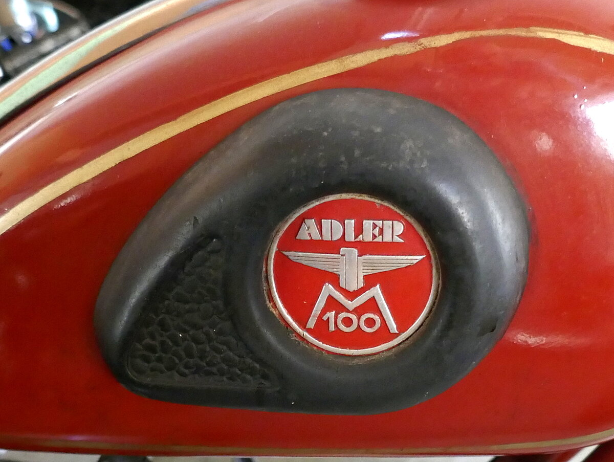 ADLER, Tankemblem am Motorrad M100 aus den 1950er Jahren, von den Adler-Werken in Frankfurt/Main, Sept.2021