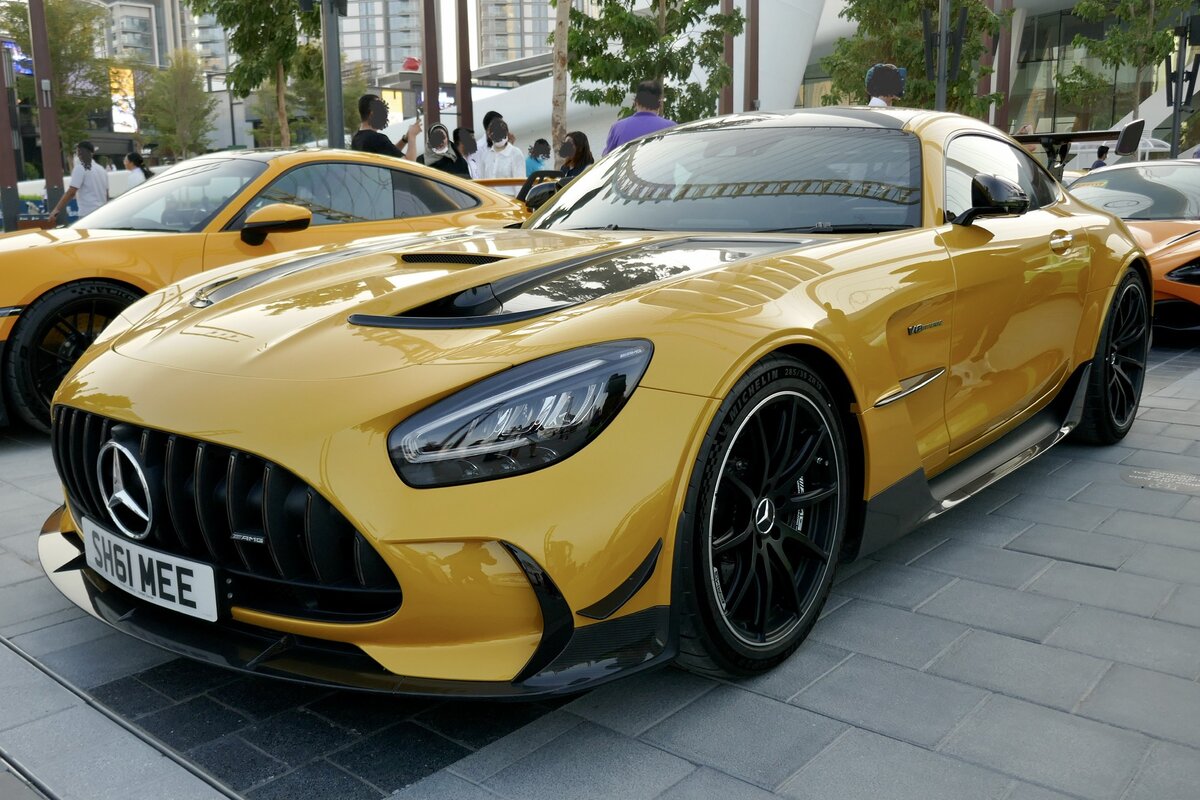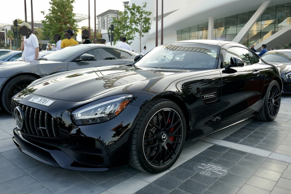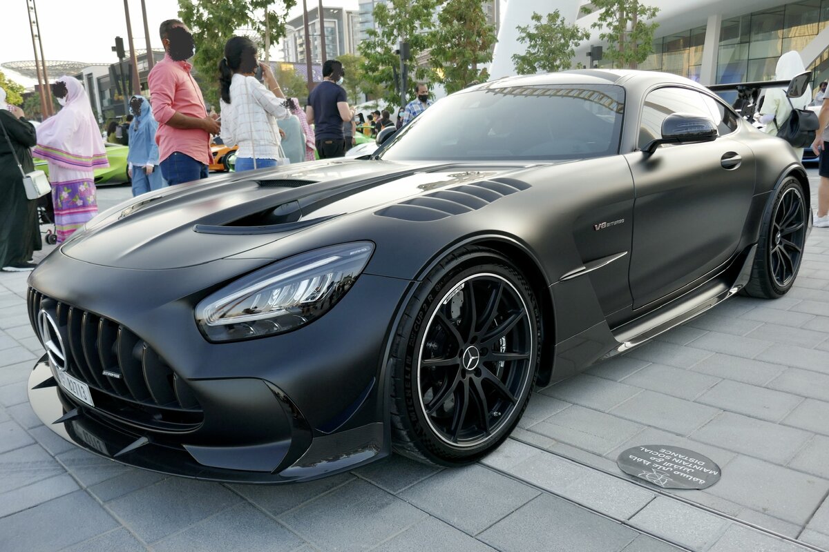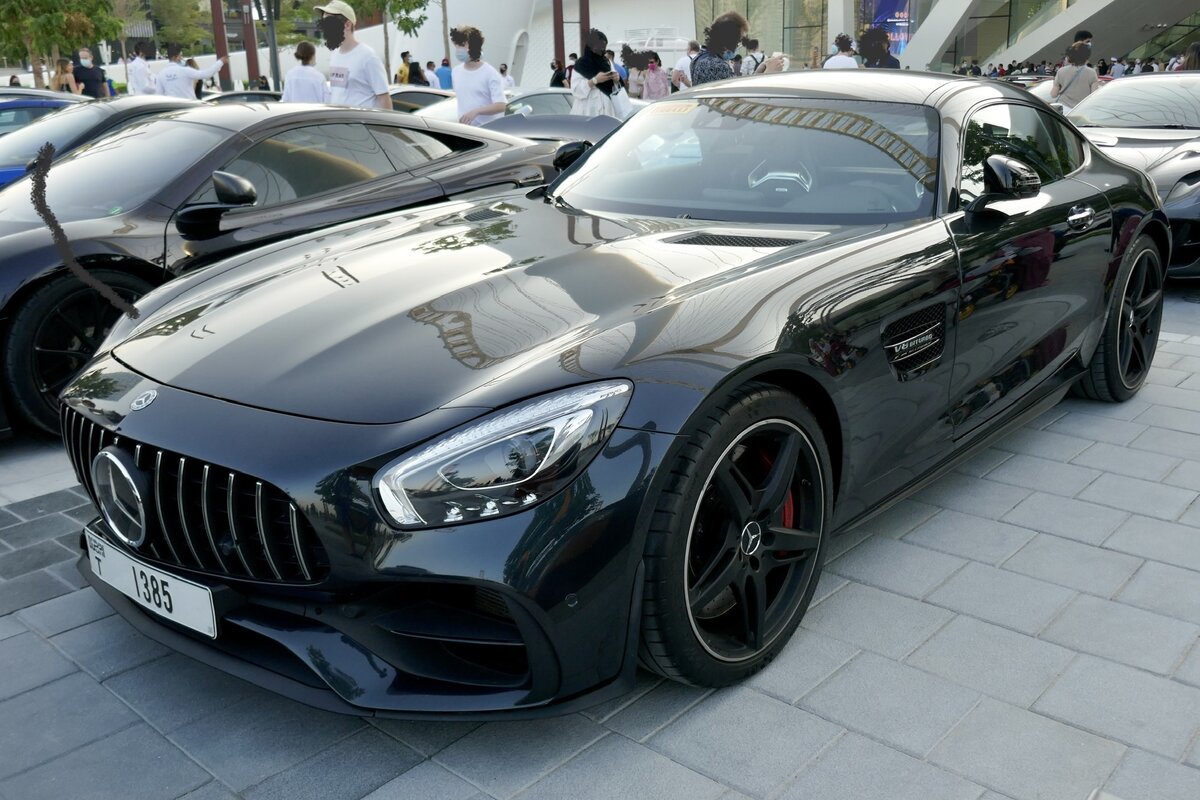 Ein Mercedes AMG GT V8 Biturbo am 1.12.21 vor dem Ain Dubai.