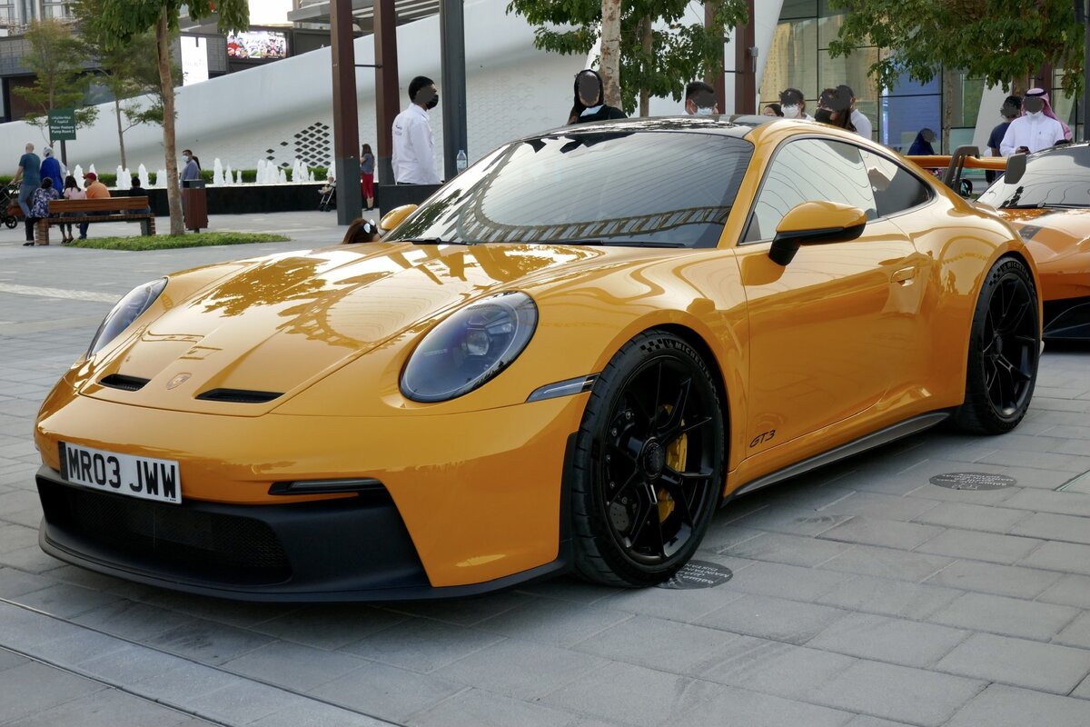 Ein Porsche 911 GT 3 RS am 1.12.21 vor dem Ain Dubai.