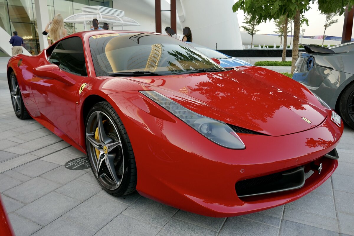 Ein Ferrari 458 Italia der am 1.12.21 vor dem Ain Dubai steht.