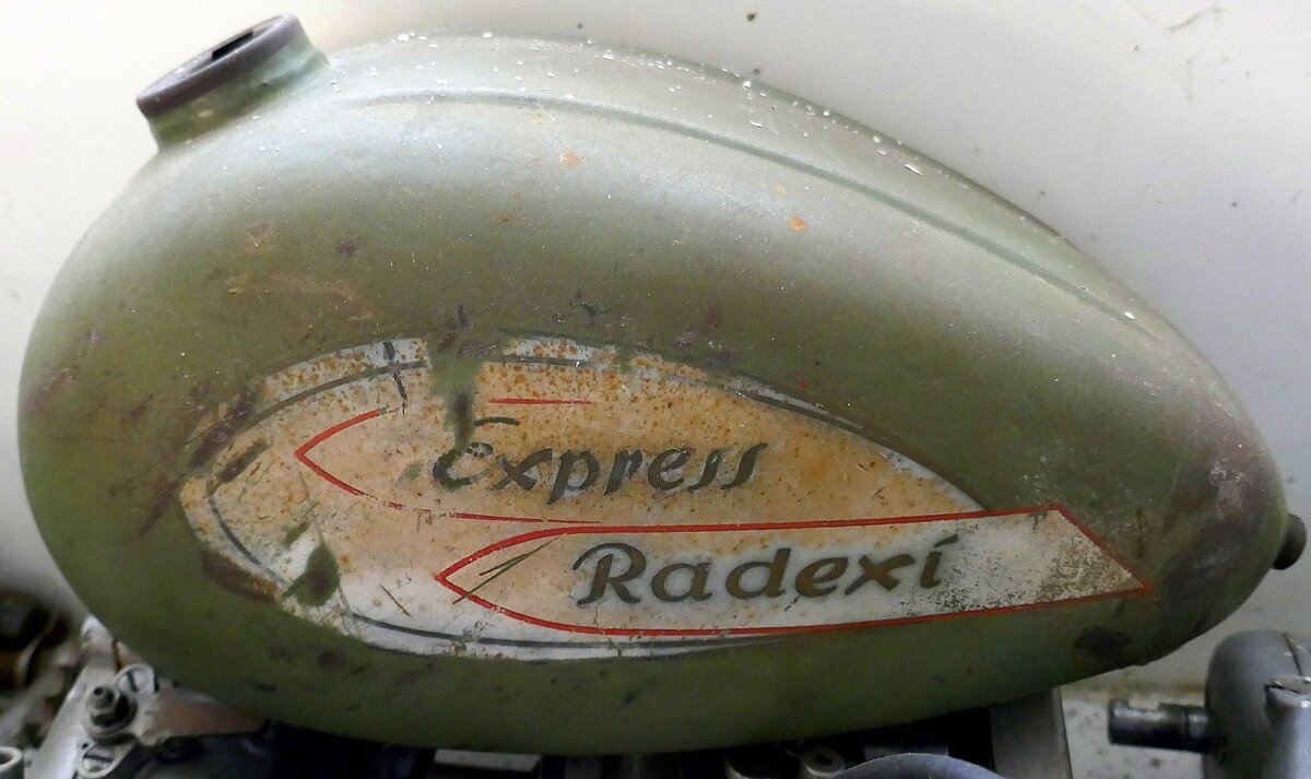 Express, Tankaufschrift am Moped "Radexi M52" von 1956, von den Express-Werken AG in Neumark/Oberpfalz, Sept.2021