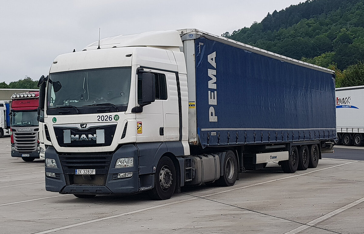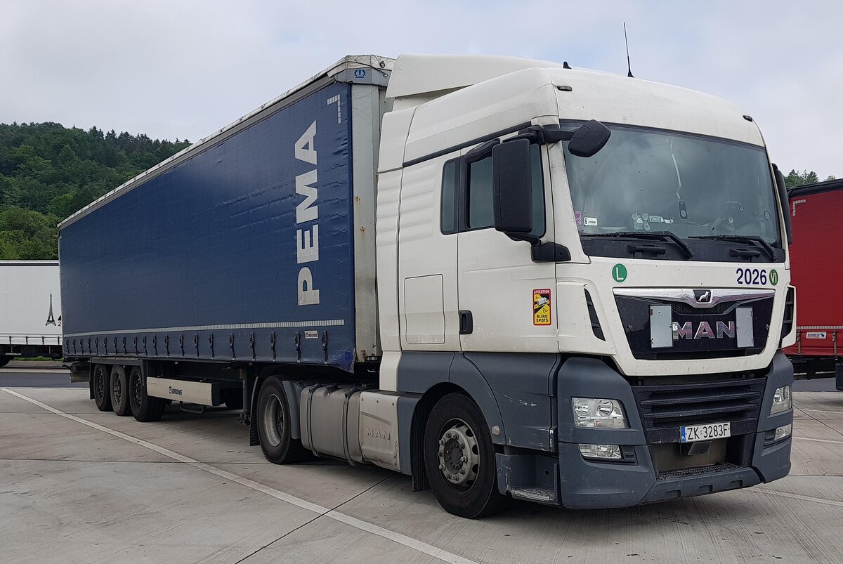 =MAN-Sattelzug steht auf einem Parkplatz an der A 66, Juli 2021