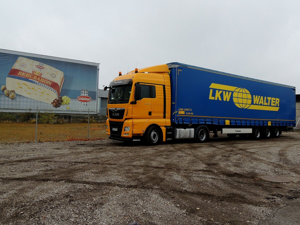 MAN TGX18.500 mit LKW-WALTER-Auflieger, mit einem Ladevorschlag im Hintergrund; 211113