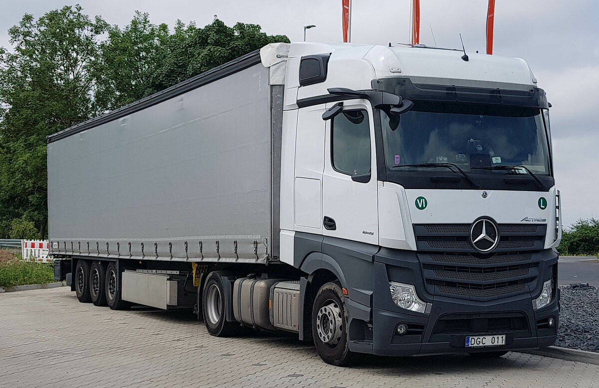 =MB Actros-Sattelzug aus Litauen steht zur Fahrerpause auf dem Rasthof Fulda Nord, 07-2021