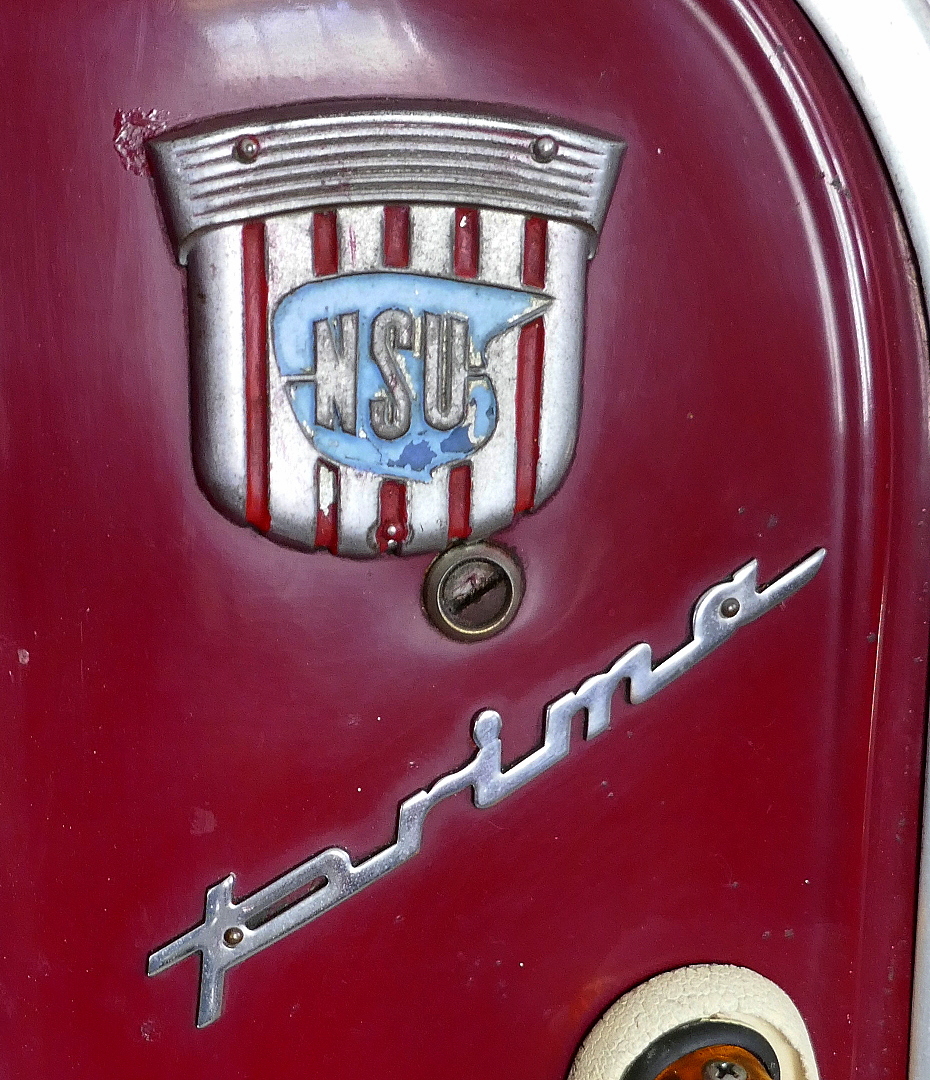 NSU, Aufschrift und Emblem am Motorroller "Prima" von 1956, Sept.2021