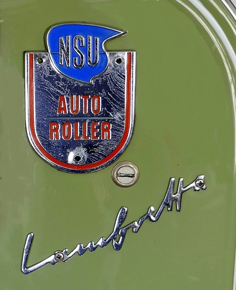NSU, Aufschrift und Emblem am NSU-Motorroller Lambretta von 1955, Sept.2021